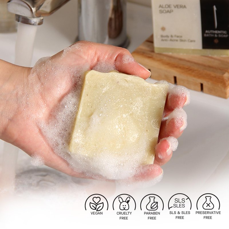 At Authentic Bath & Soap, we believe in the purity of natural ingredients and ethical production. Our aloe vera soap is eco-friendly packaged, free from harmful chemicals and synthetic additives, ensuring a safe and enjoyable experience for your skin.