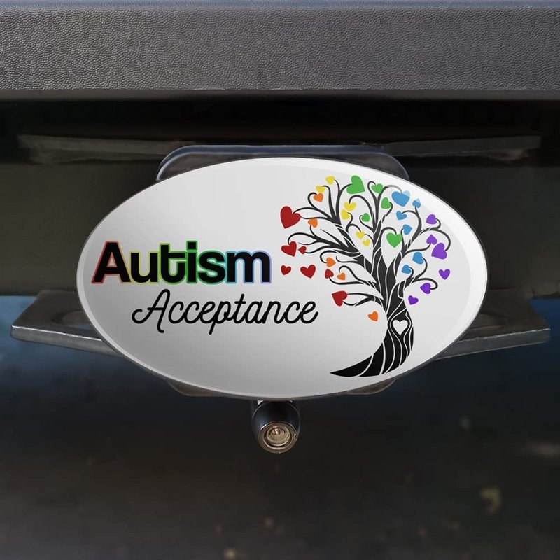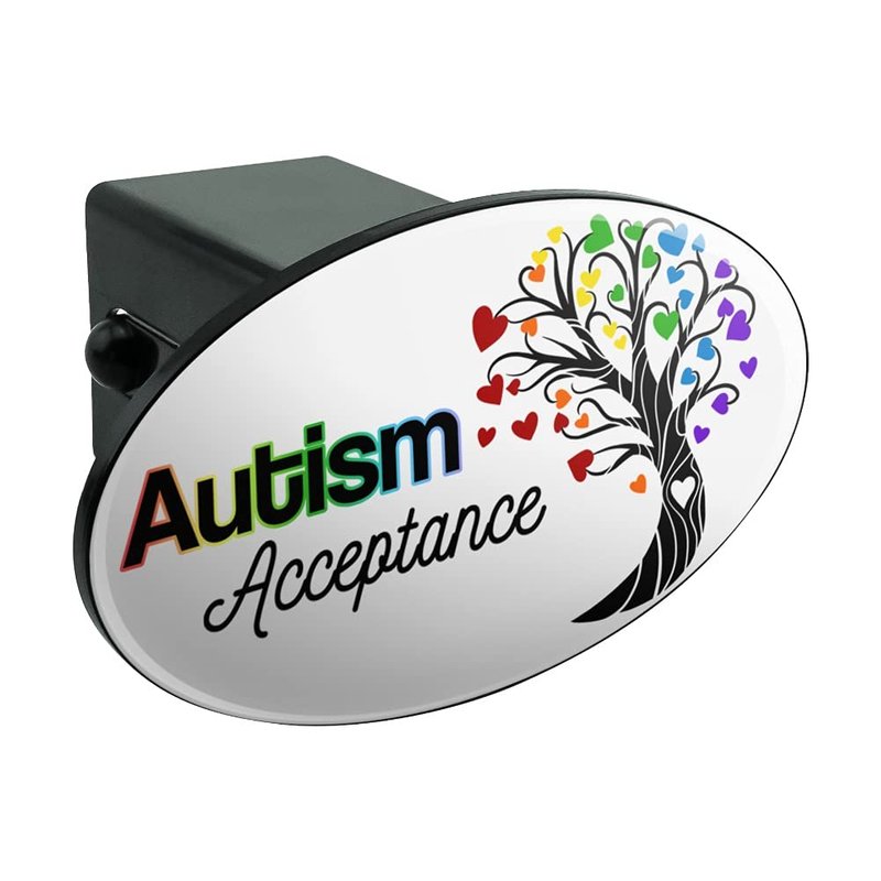 Autism Acceptance Tree of Life with Hearts Oval Tow Trailer Hitch Cover Plug Insert