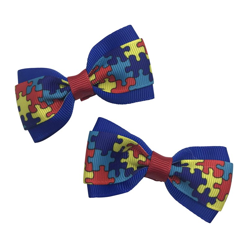 - Absolutely adorable handmade Autism Awareness girls hair bow set. A perfect way to dress up your little girl. Perfect for weddings, holidays or daily use.