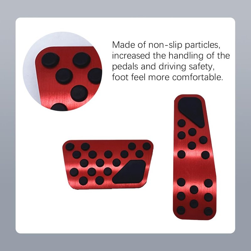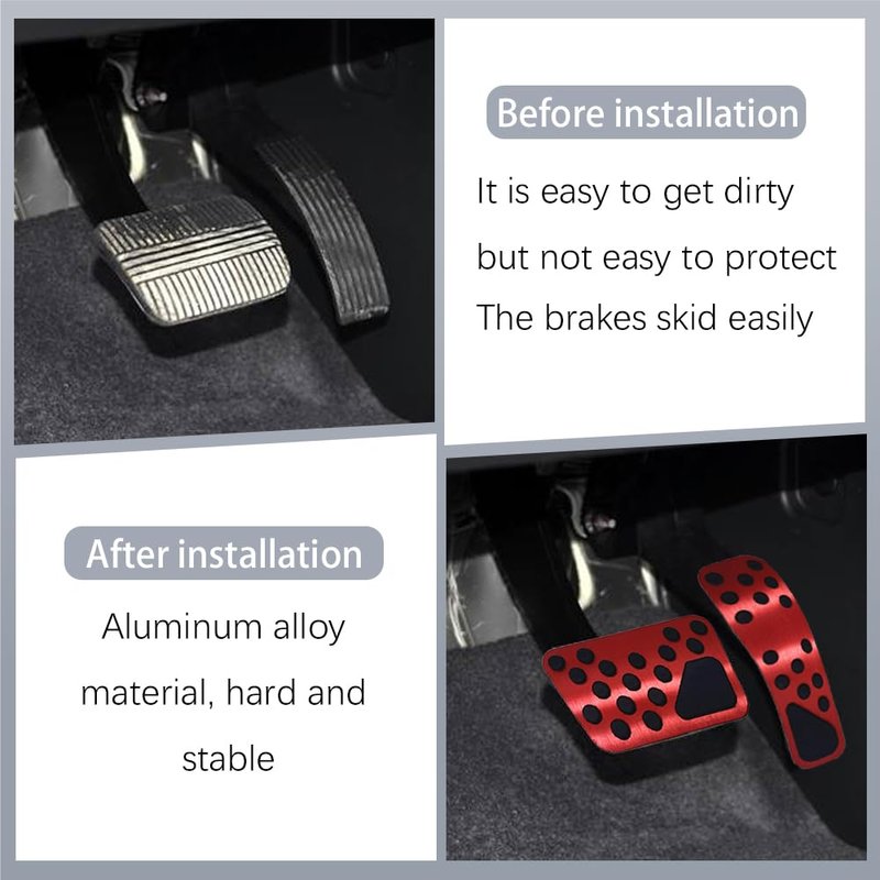 - [Material]: The upgraded Auto Aluminum Pedal Covers are made of a Premium Aluminum Alloy Panel and frosted surface,Perfect fit to provide effective grip, prevent rust and durability, prevent fracture and deformation.