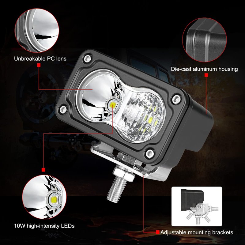 - PACKAGE INCLUDED - 2PCS 3 inch combo led pods offroad, mounting brackets, necessary mounting hardwares. Your satisfaction is backed by 2-years quality guarantee and 24-hours online after-sale services.