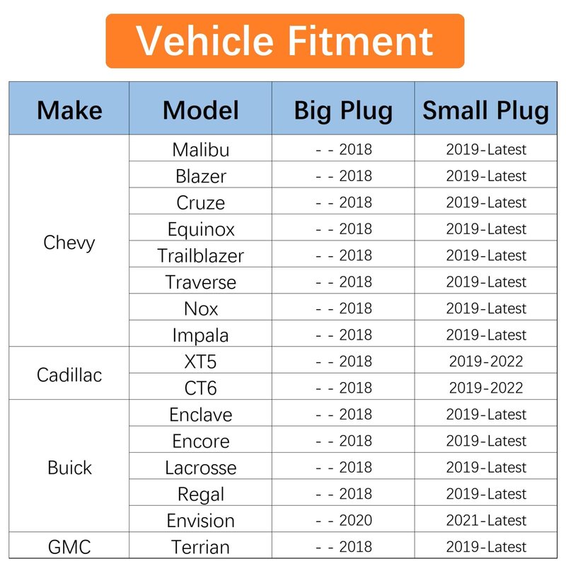 - 【Fitment】: for Chevrolet Equinox 2019-2023, Chevrolet Malibu 2019-2023, Chevrolet Cruze 2019-2023, Cadillac XT4 2019-2022, Cadillac XT5 2019-2022, Cadillac CT6 2019-2022, Buick Enclave 2019-2023, Buick Encore 2019-2023.