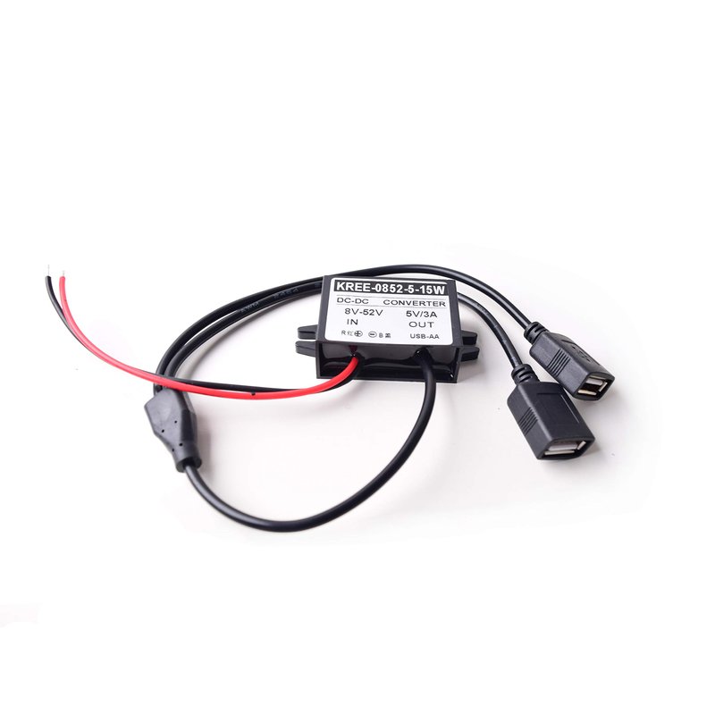 - Universal DC 12/24/36/40/52V to 5V Step Down Converter, Dual USB Female Socket Charging Cable. (8-52V Wide Range Input) Max Current 3A, Power 15W. Widely Used in Truck, RV, Trailer, Long Vehicle, Car, etc..