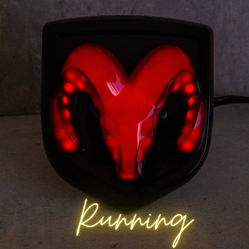 - Long life LED light powered Dodge Ram tailgate emblems