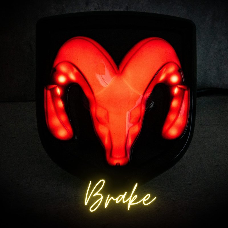 Provides low Illumination with the tail lights on and high illumination when the brakes are applied. The black metallic coating appears transparent when the red LEDs shine through the Ram logo.
