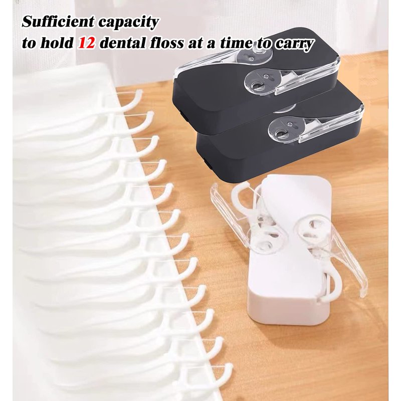 - 【Unique Design】: The dispenser contains 12 floss, lightly press the floss holder will automatically eject, 1 floss will be ejected each time, simple and exquisite dispenser can be reused, easy to add, just open the back cover to add. Closed design, no contamination to other floss when you take it, clean and hygienic.