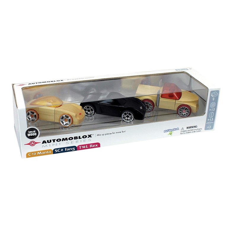 Automoblox Collectible Wood Toy Cars and Trucks—Mini Manta/Fang/Rex 3-Pack (Compatible with other Mini and Micro Series Vehicles)