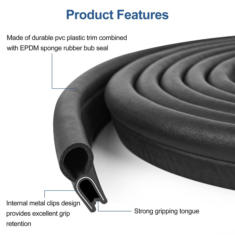 【Product Structure and Size】This car door rubber seal strip is 10ft. U Shape PVC Trim adopts the high-quality internal metal clips structure provides excellent grip retention to promise a stable and strong grip, and the EPDM rubber top bulb provides a secure seal for a variety of applications. 【Weather Resistance】The rubber bulb seal can provide excellent protection against heat, corrosion and extreme weather damage. High temperature and cold resistance, protection against ultraviolet light. 【Safe And Durable】This car door rubber seal adopts excellent EPDM rubber and PVC plastic to protect your vehicle, and effectively play a role in noise reduction, eliminate vibration, waterproof, dustproof , soundproof and windproof. 【Installation】Durable EPDM foam rubber contains internal metal clips to grip permanent around the install place and excellent grip retention. It easy to install, not need to adhesive, just push-on trim seal allows for a fast installation. 【Wide Range of Application】The car door seal strip suitable for all kinds of vehicles, trucks, trailers, trains,ships, aircrafts; various doors and windows, building; various electrical cabinets, generators, metal plates.