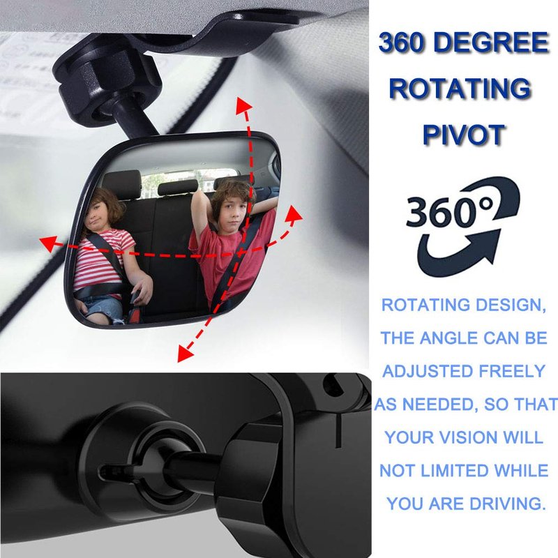 - ★ FITS FOR - pivot on the back of the car mirror for baby is 360 degree adjustable.The mirror won't come down or shake when the car is moving. No assembly required and no tools required.Installs in seconds, it fits most cars, trucks, vans, SUVs.