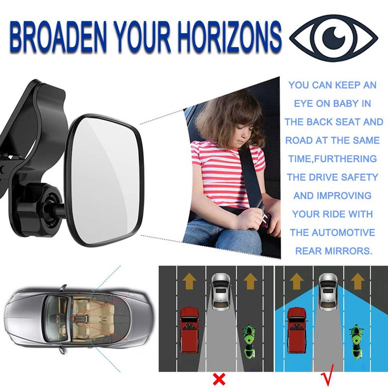 - ★ CLEARER VIEW - The small back seat baby mirror is curved, convex mirror provides an expanded view of baby,you can keep an eye on children in the back seat and road at the same time,furthering the drive safety and improving your ride with the automotive mirrors.It is great made for both the baby and the parent.