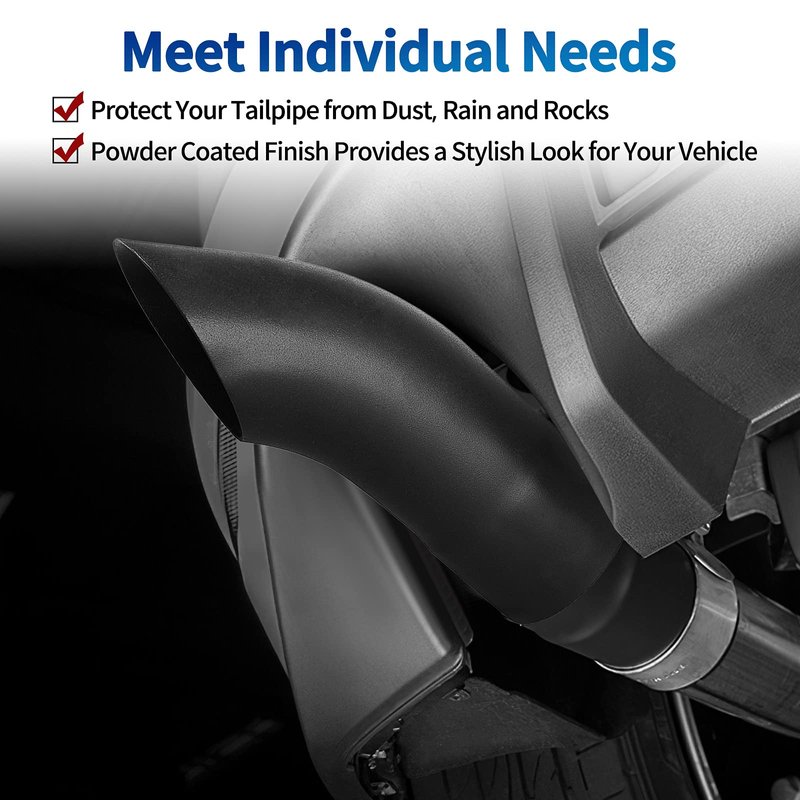 - Stylish Look: Stainless steel material made with powder coated black finish provides a stylish look for your vehicle instead of the rusted old tailpipe. Effective protect your tailpipe from dust, rain and rocks, also Prevent it from deformation and damage.