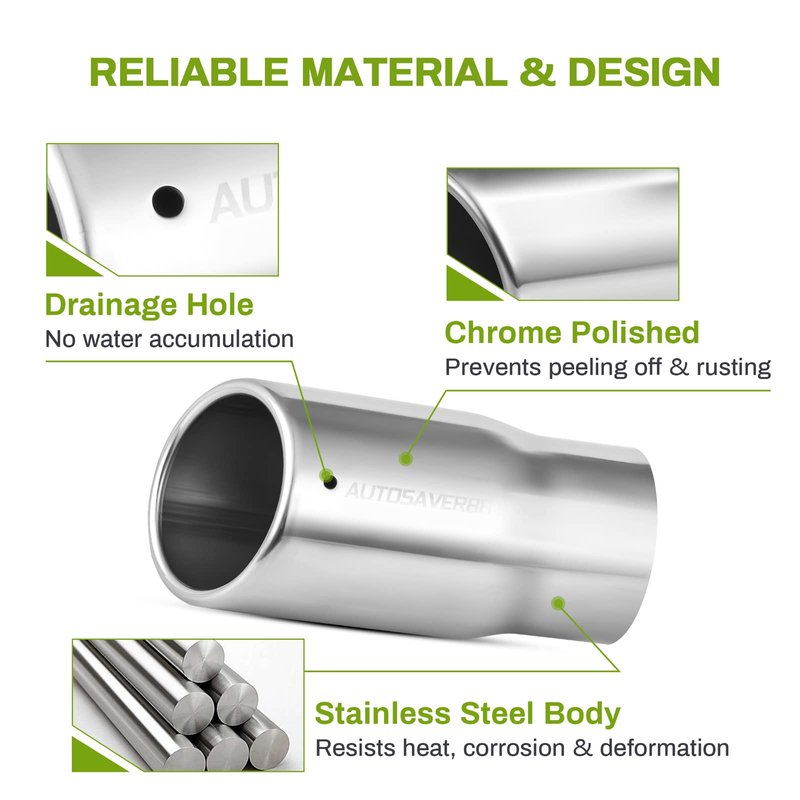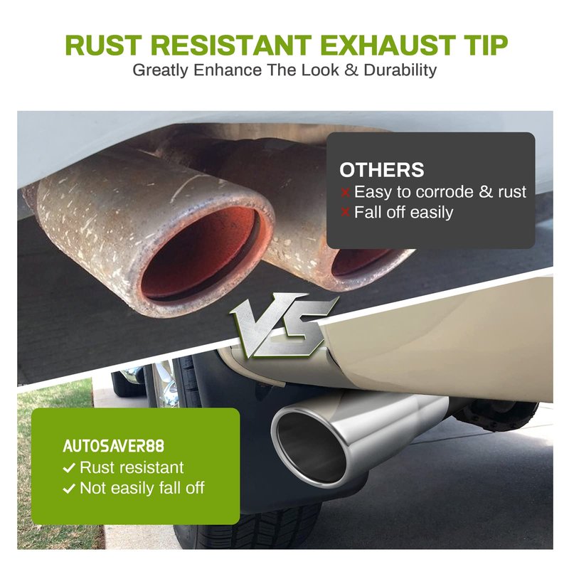 - Anti-deformation & rustproof: built from high-grade stainless steel with chrome polished finished, our exhaust tips effectively resist heat, rust and deformation to protect & decorate your tailpipe system well; plus, a drainage hole helps drain water to prevent rust