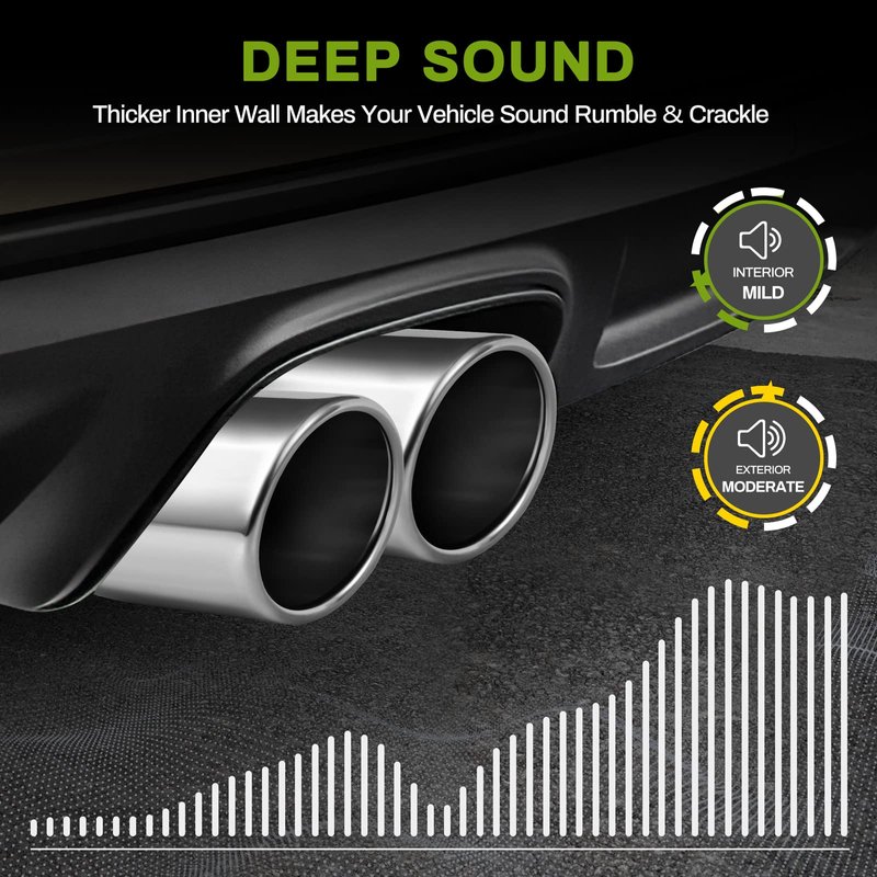 - Stylish & pleasant-sounding: sleek 20-degree rolled-edge angle cut and thicker inner wall design make your car sounds rumble and crackle for a more powerful and unique sound while giving your car a new & sporty appeal