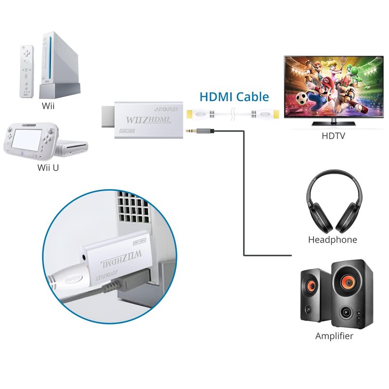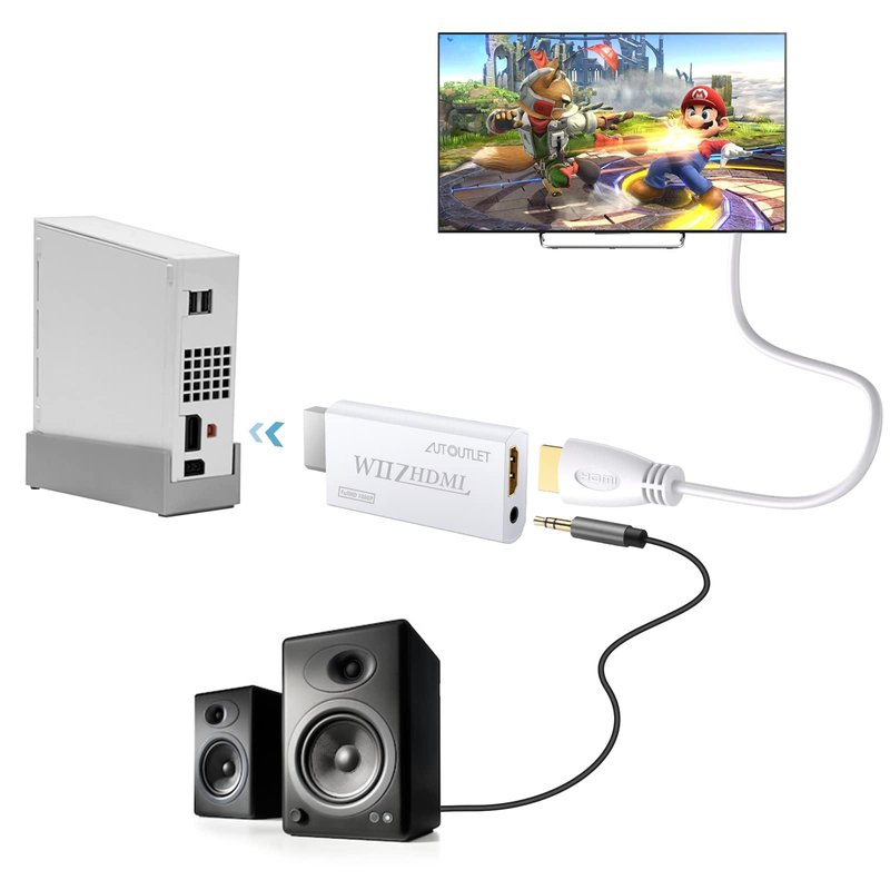 - 【AUTOUTLET Wii to HDMI Converter】AUTOUTLET wii hdmi adapter with 3.5mm audio jack, is compatible with wii game console except wii mini. Use this adapter to connect your wii with a HDMI compatible device and enjoy the game time.