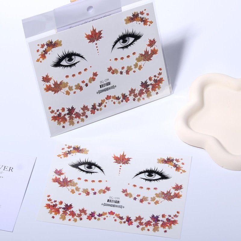 Autumn Face Sticker Yelllow Orange Maple Leaf Temporary Tattoos Sticker Glittery Face Body Tattoos Party Makeup Self AdhesiveThanksgiving Party Supplies