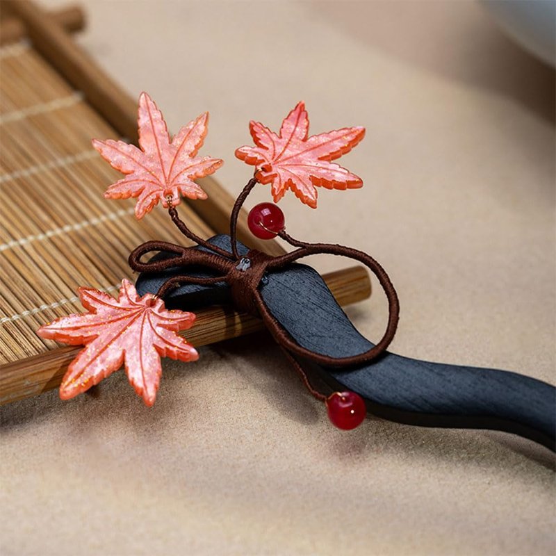 - This hairpin is made of wood and is very beautiful with maple leaves.