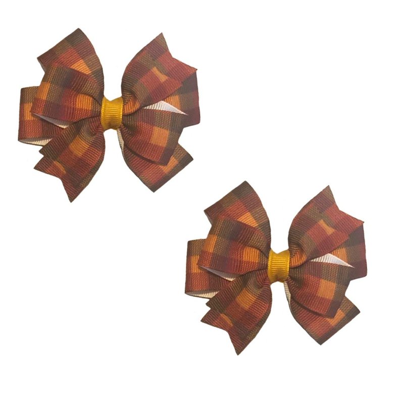 These bows come 2 in a set. They can be mounted on small french barrettes OR partially lined alligator clips. Each set consists of one bow for the right side of the head and one bow for the left side of the head. Each of these bows measure 3.5 inches wide by 3 inches high. I do have these in many colors listed in my shop.