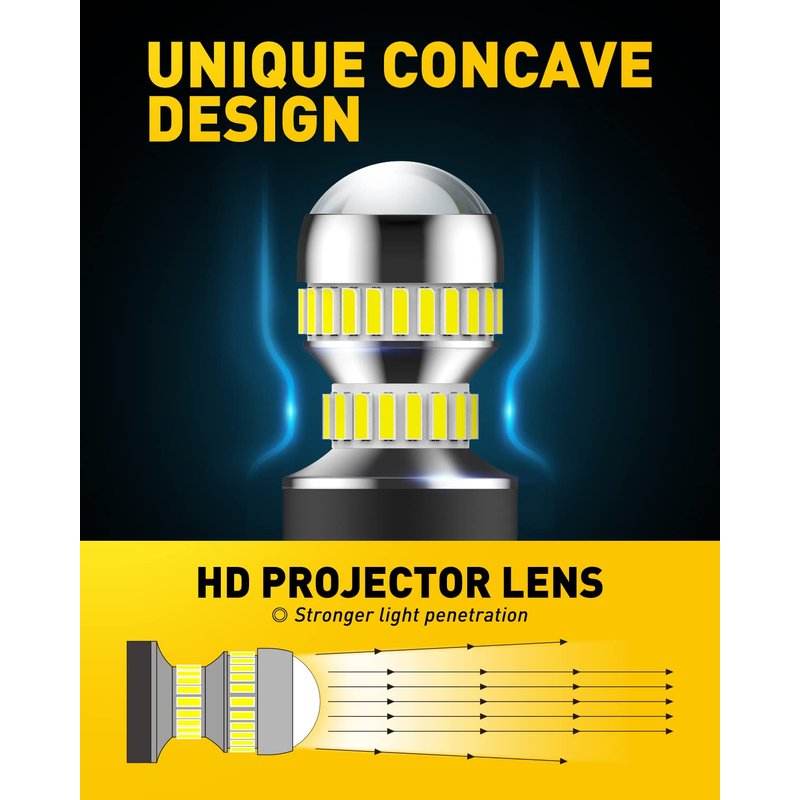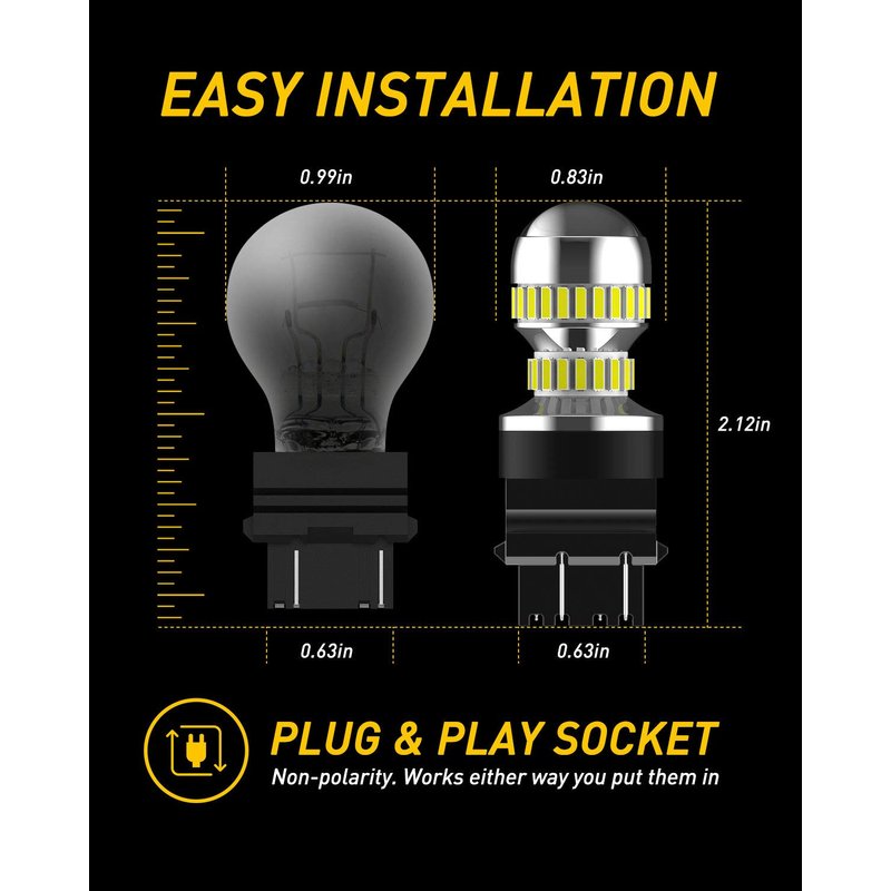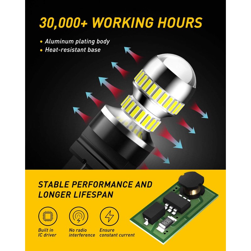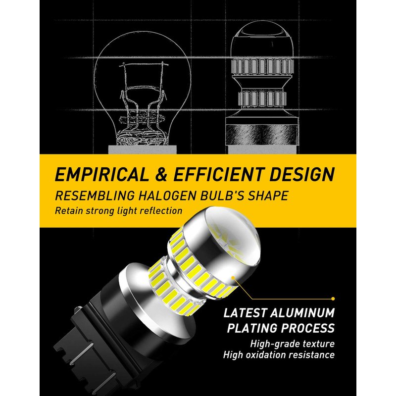 Better Light Performance: Each led 3157 white bulb equips with 54 pieces high power premium quality and high illumination 4014 SMD led chips. 360° full angle degrees light output, the same light theory as the stock lamp for the better light performance.