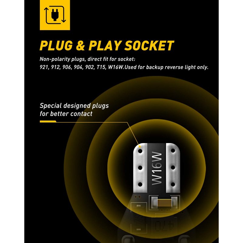 - Suit for Socket: T15, 912, 921, 906, 904, 902, 922, W16W, just plug and play without modification. ONLY used for backup reverse lights