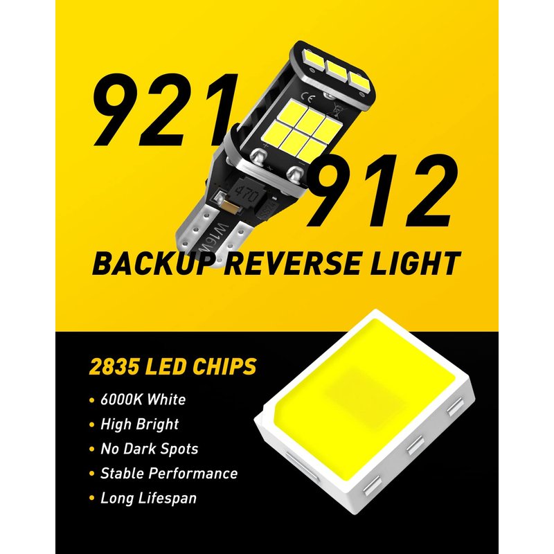 - 300% Brighter: Each 921 led bulb has 15 pieces high power 2835-SMD LEDs, 3 times brighter than original reverse light bulbs. 6000k white color light brings your car a refreshed new look