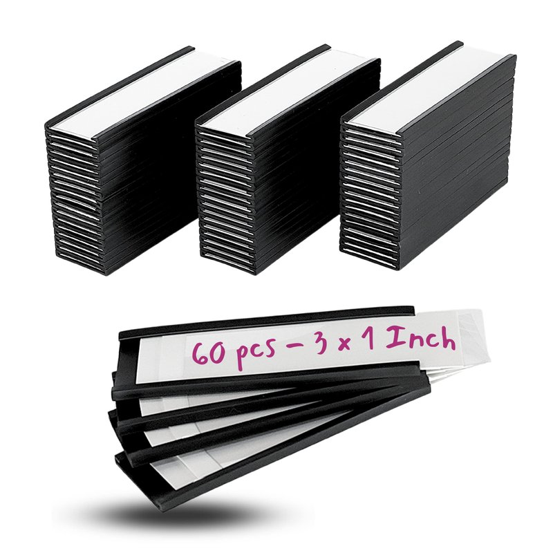 - Application: Present important information to customers, colleagues, and friends in a clear and eye-catching way! This magnet labels for steel shelves set comes in 60 pcs - 3x1 inches, providing your business with a choice to best work with your décor;