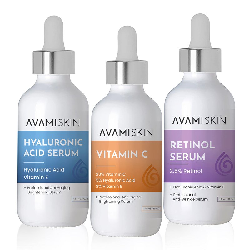 AVAMI 3-Piece Skin Serum Set - Vitamin C, Hyaluronic Acid, Retinol - Unisex - 1 fl. Oz