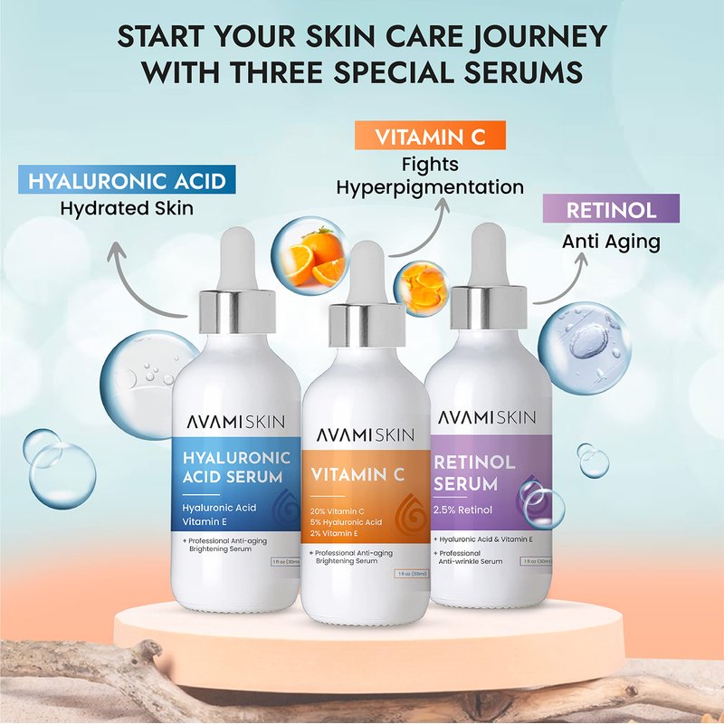 Take your skincare routine to the next level with the Avami Skin 3-Piece Serum Combo Pack.