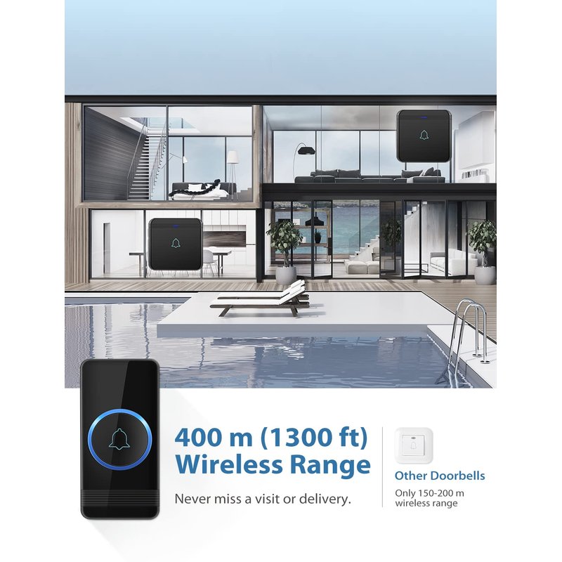 The doorbell supports an extensive 1300-foot working range (depending on the operating environment). Rest assured that you’ll never miss any important guests or urgent deliveries with the help of the doorbell.