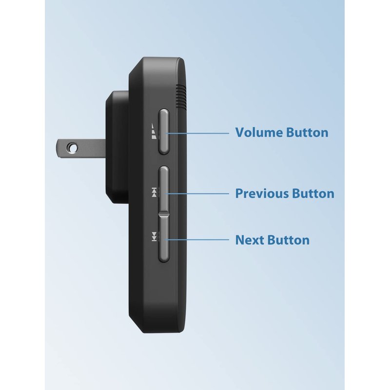 - 52 BEAUTIFUL CHIMES: 40 mm stereo speaker delivers rich and crisp sound; press the Next or Previous button to easily choose from 52 melodies; 5 adjustable volume levels, with a maximum volume of 115 dB; enjoy pleasant melodies whenever someone rings at your door
