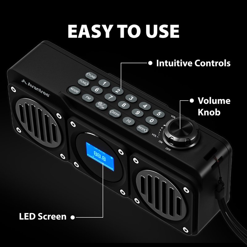 - [4-IN-1 FUNCTIONALITY] Use the Avantree Boombyte to enjoy your favorite FM radio stations, stream music from a Bluetooth enabled device, play music from a USB drive, or play music from an SD card.
