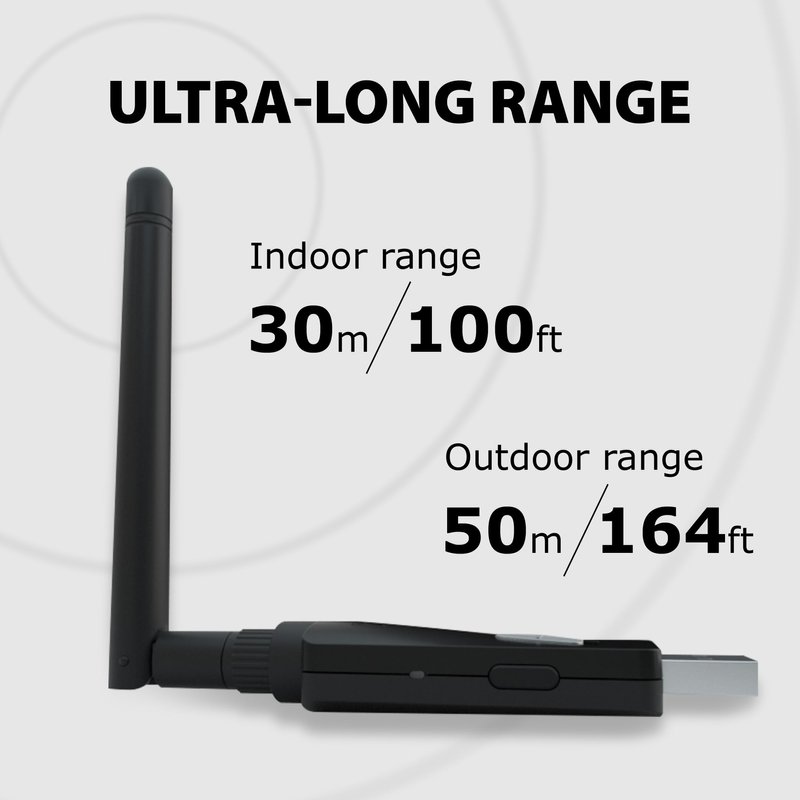 - [USER-FRIENDLY] No complicated software or driver installation required with our plug-and-play transmitter. The device auto-reconnects for easy integration and wireless audio enjoyment on your PC.
