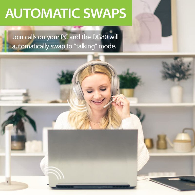 - [PC & Mac Compatible] The DG80 is not only great for game audio streaming but it’s also perfect for work-from-home conference calls and meetings. Skype, Zoom, Teams, Meet & more, the Bluetooth adapter automatically switches between Music and Talk modes when used on a Windows PC.