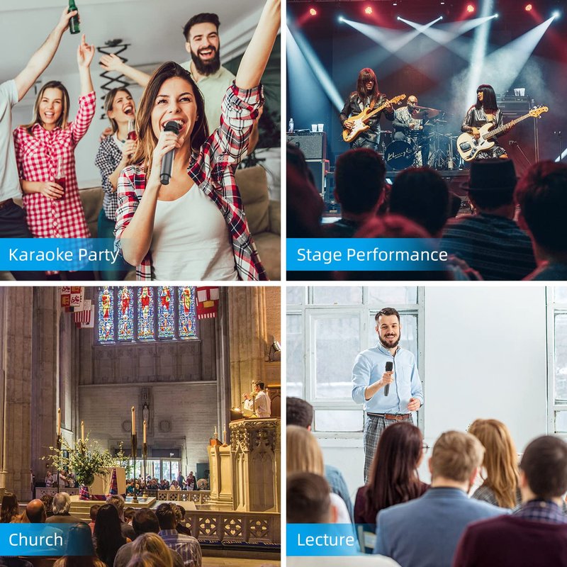 - 🎤Operating Range: Maximum 100 feet (the open area) to freely move around during performances Reliable signal and no worried about the sound will be cut in and out during use.Use it for a multitude of events, such as family karaoke, church gatherings, weddings, meetings, and presentations;