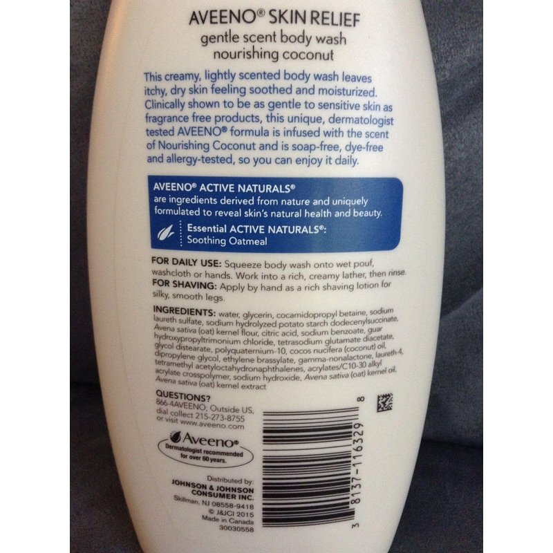 AVEENO Active Naturals Skin Relief Gentle Scent Body Wash, Nourishing Coconut 12 oz (Pack of 6)