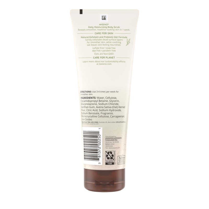 - 8-ounce tube of Aveeno Daily Moisturizing Body Scrub gently exfoliates and removes dead skin for smoother, healthier looking skin in just one week