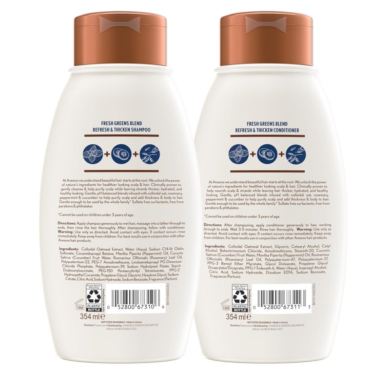 Aveeno Fresh Greens Shampoo + Conditioner with Rosemary, Peppermint & Cucumber to Thicken & Nourish, Clarifying & Volumizing Shampoo for Thin or Fine Hair, Paraben-Free, 12 Fl Oz