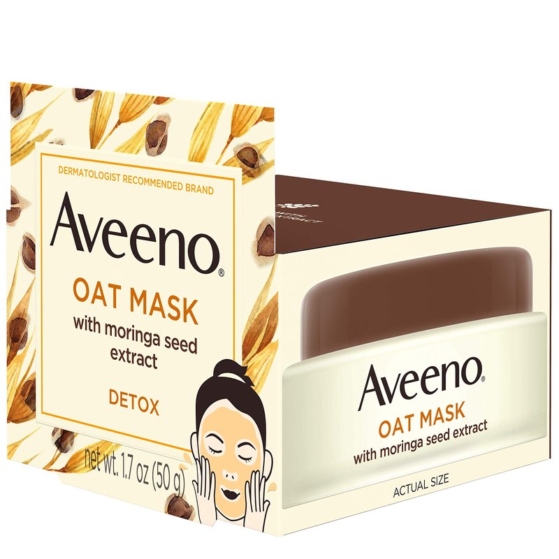 - 1.7-ounces of detoxifying Aveeno Face Mask with nourishing oat and moringa seed extract and vitamin E, an antioxidant