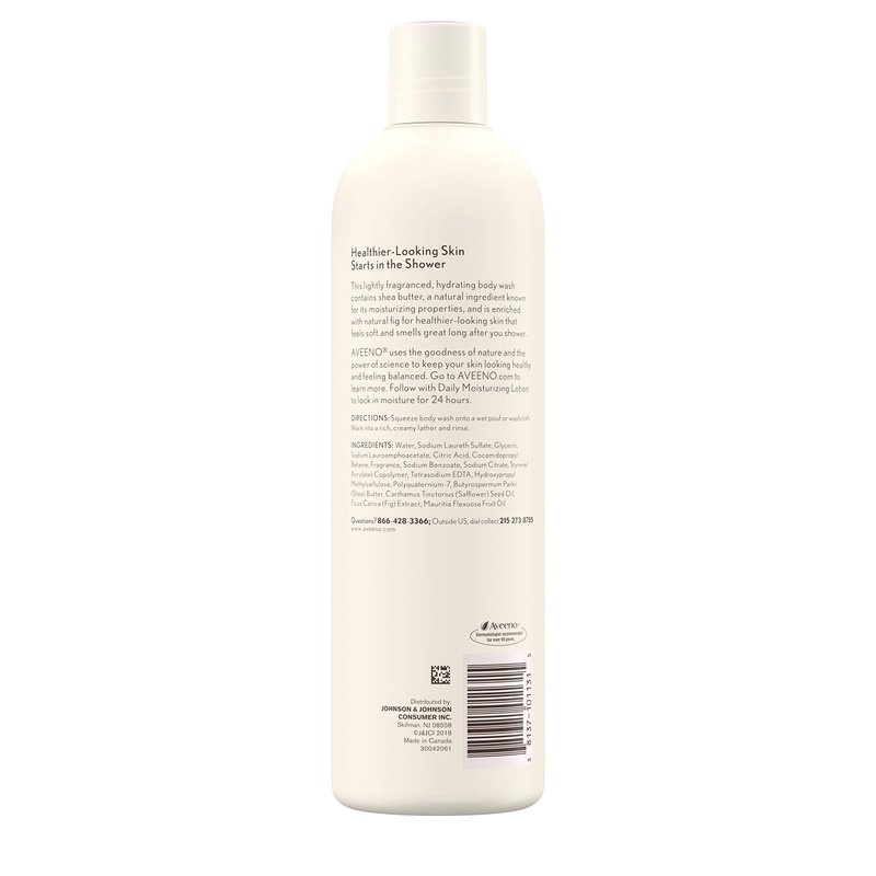 - 16-fluid ounce bottle of Aveeno Positively Nourishing Hydrating Body Wash with Fig & Shea Butter is designed to cleanse and moisturize for softer, healthier-looking skin