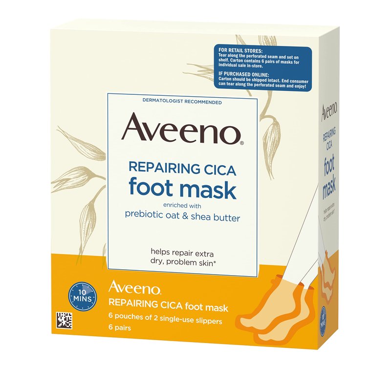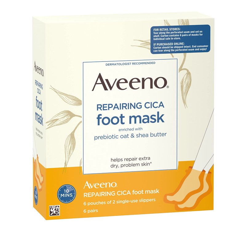 - Pack with 6 pairs of single use slippers. Indulge your feet with this product from the Aveeno Skin Relief collection, the easy-to-use and non-drip Aveeno Repairing CICA Foot Masks with shea butter and oat