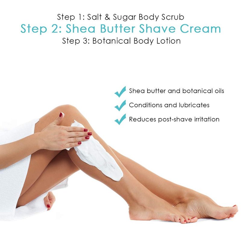 - Shea Butter Shaving Cream for the Smoothest & Closest Shave. Formulated with shea butter and botanical oils to soothe skin. At- Home Spa-Treatment you deserve.
