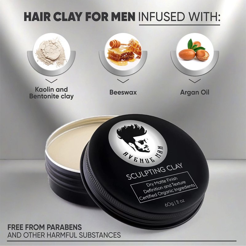 Avenue Man - Hair Clay for Men - Matte Finish Sculpting Clay - Strong Hold, Maximum Definition and Textured Control - For All Hair Types - Infused with Beeswax, Kaolin Clay and Argan Oil - 3.0oz/90g