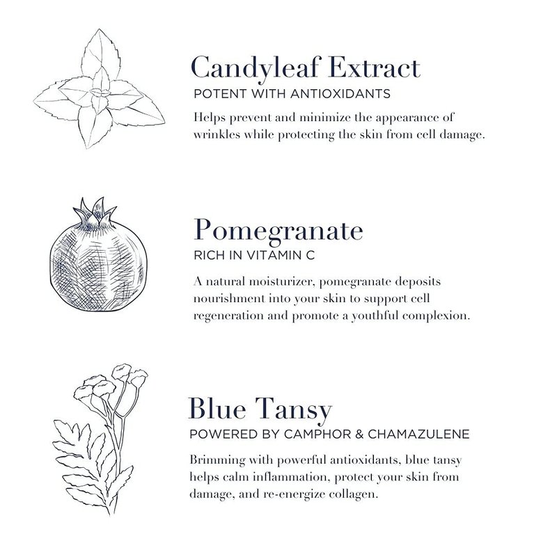 - Through an extraordinary blend of 30 natural-based botanicals, this product supports collagen production to soften the appearance of wrinkles, fine lines, and dark marks.
