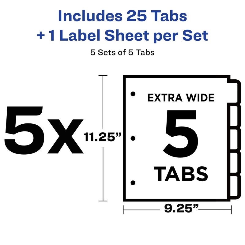 Avery 5-Tab Extra Wide Binder Dividers, Easy Print & Apply Clear Label Strip, Index Maker,White, 5 Sets (11440)
