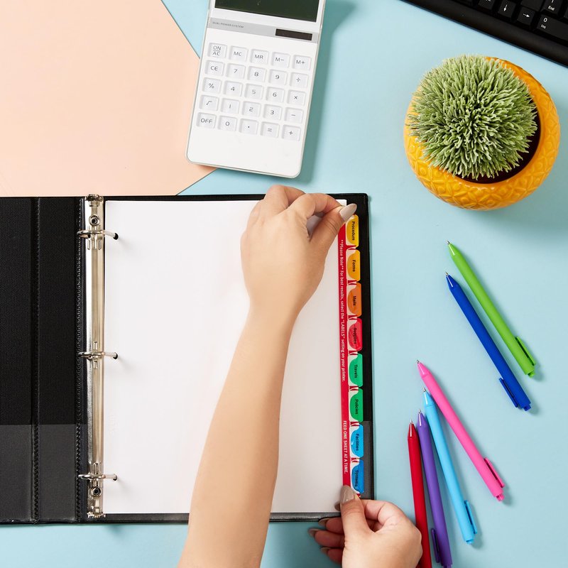 - Find binder sections easily with white tabbed dividers featuring brightly colored tabs perfect for color coding and quick referencing