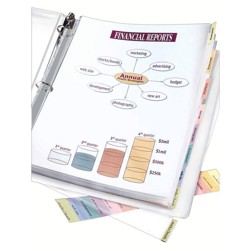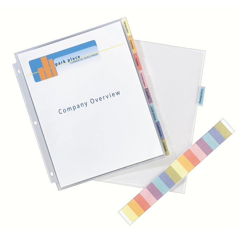 - Easily insert and remove 8-1/2" x 11" documents in the top load sheet protector with tabs; item includes 5 tabbed page protectors