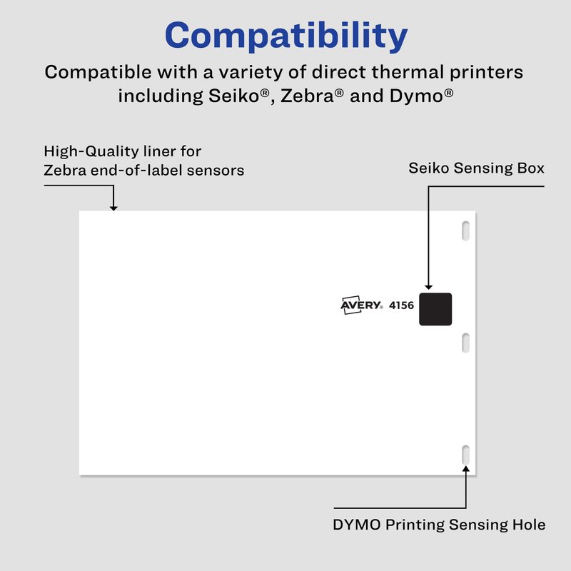 - Printable multipurpose label rolls are compatible with various direct thermal label printers including DYMO, Zebra and Seiko