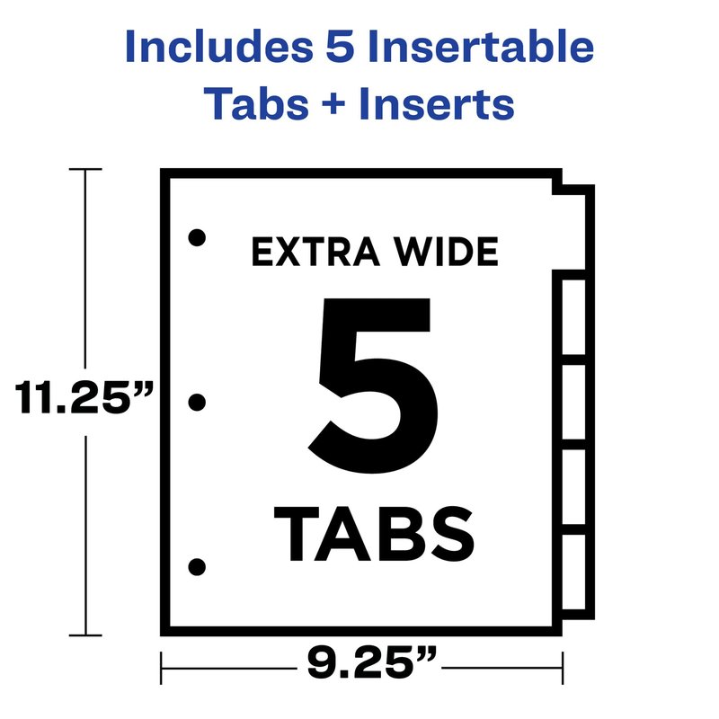 Avery Dividers for 3 Ring Binders, 5 Tab Binder Dividers, Plastic Binder Dividers with Pockets, Insertable Big Tabs, Multicolor, Works with Sheet Protectors, 1 Set (11902)