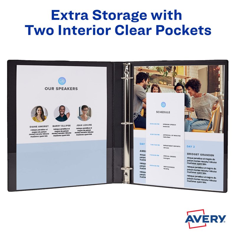 - Whether you're taking them to school or using them around the house, Avery Durable Binders are made with a non-stick poly material that lasts longer than traditional binders