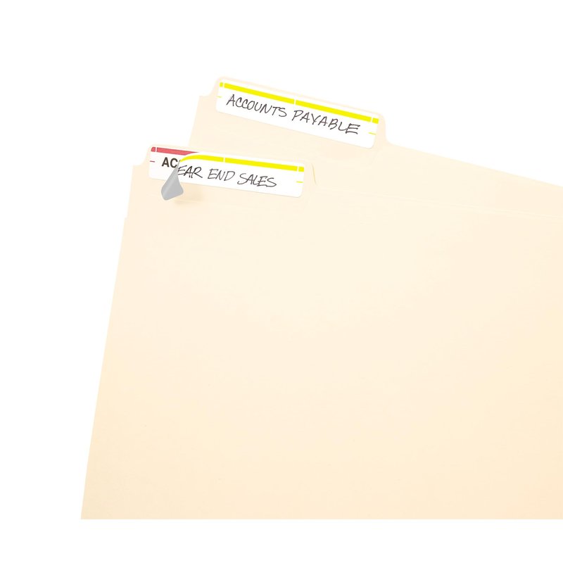 - Manage and identify files efficiently; an eye-catching yellow bar over the white label surface allows for effective color coding and organizing labels for home, office, or school