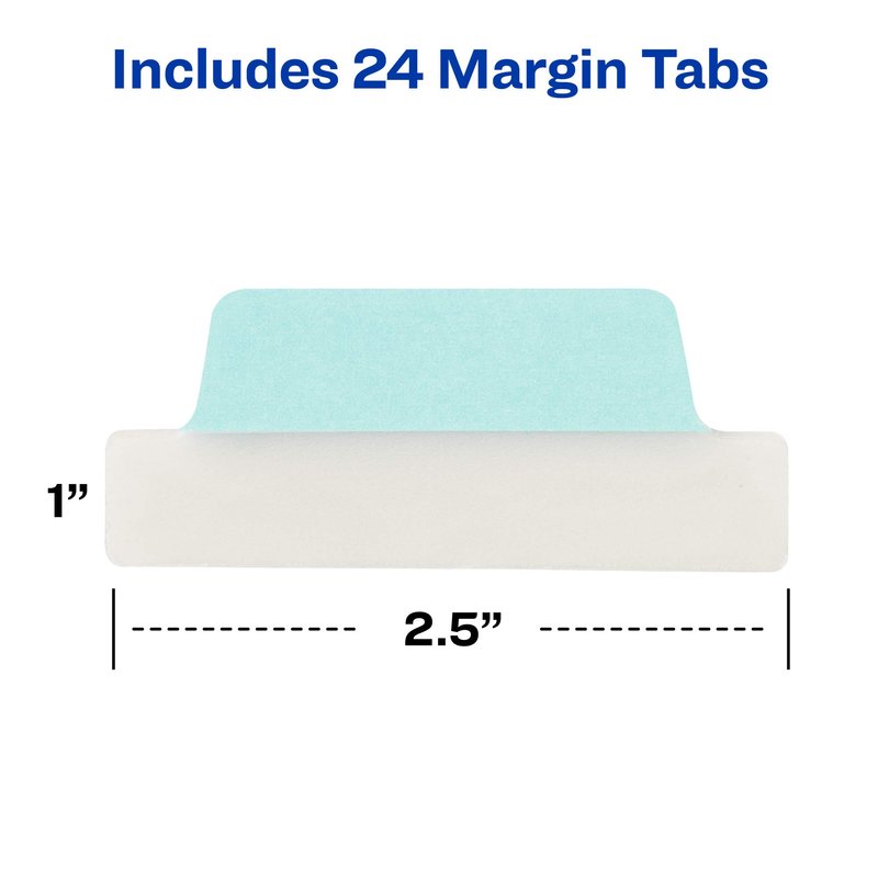 Avery Margin Ultra Tabs, 2.5" x 1", 2-Side Writable, Assorted Pastel Colors, 24 Repositionable Tabs (74769)